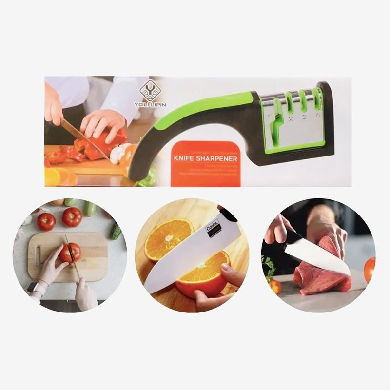 Afilado de 3 etapas: Adopta un proceso de 3 etapas para afilar rápidamente sus cuchillos en solo 3-4 tirones sin preocuparse por obtener el ángulo correcto.